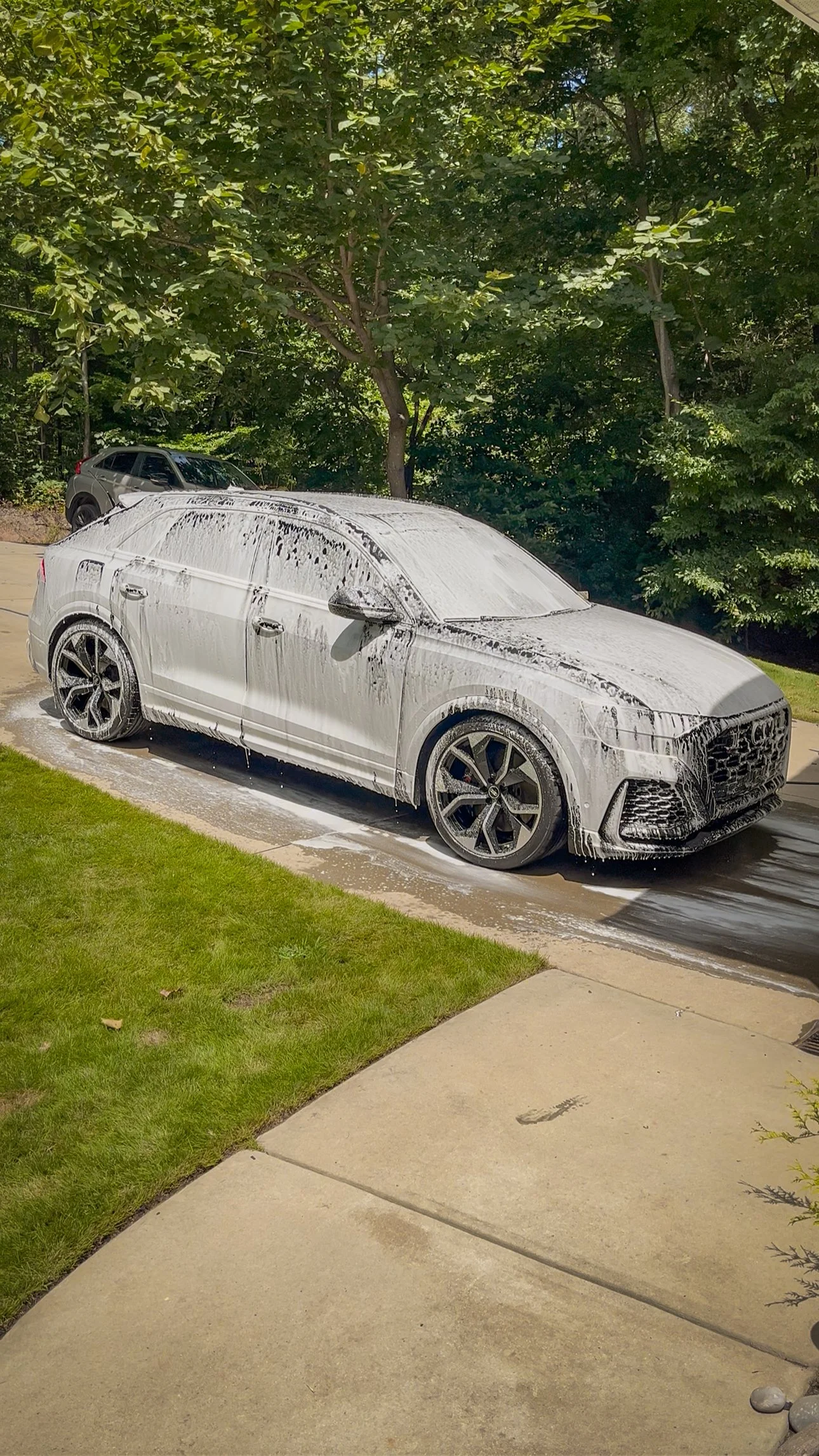 Micro fiber foam wash, interior vacuum, all panel lightly wipe down, all windows cleaned, wheels cleaned, hand dry, tire dressing.